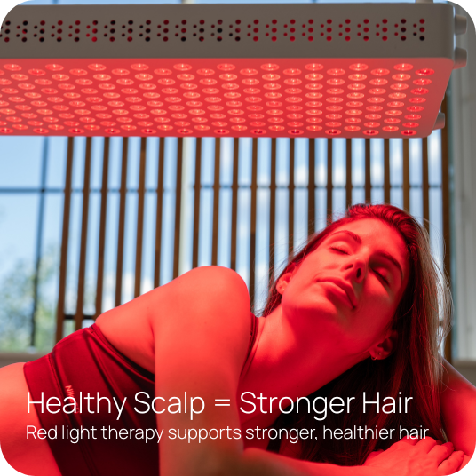 Red light therapy penetrates deep into the follicles, reducing the inflammation that leads to cell death and hair loss. It stimulates circulation and boosts cellular energy where it matters most. Over time, it reduces shedding, strengthens existing strands, and supports thicker, fuller hair and consistent growth.