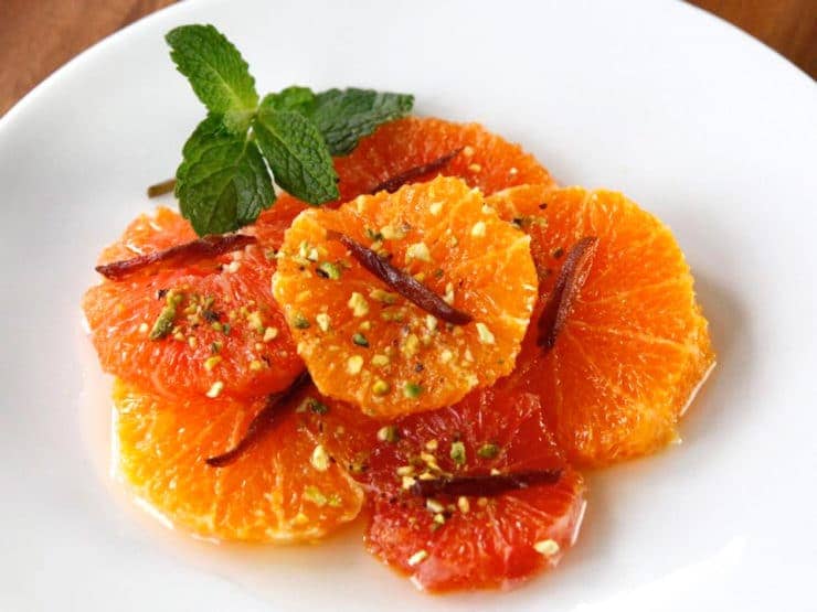 Sweet Citrus Rosemary Medley: A light, fresh, and seasonal dessert made from oranges, sweet rosemary syrup, pistachios and dates. Easy to make ahead, chill, and serve after a heavy holiday meal.