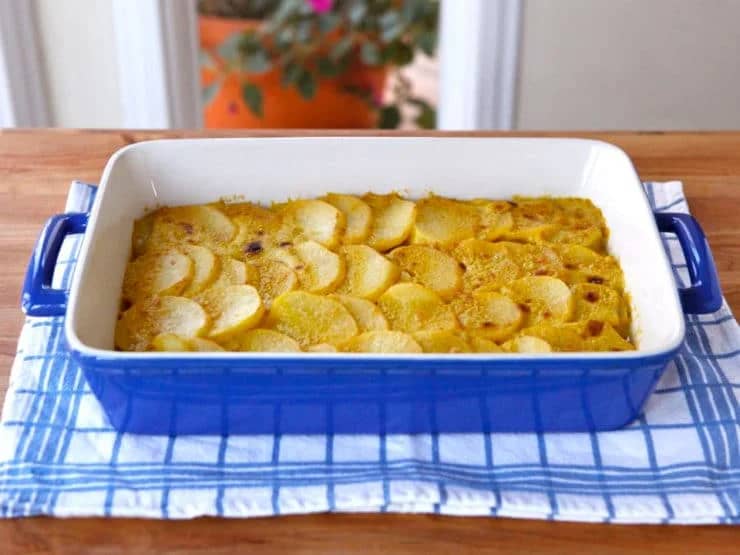 Vegan Saffron Scalloped Potatoes: Creamy, fragrant, and elegantly spiced with saffron for a luxurious twist on a classic. Made with coconut milk for richness without dairy, this side dish is perfect for cozy dinners or special occasions.