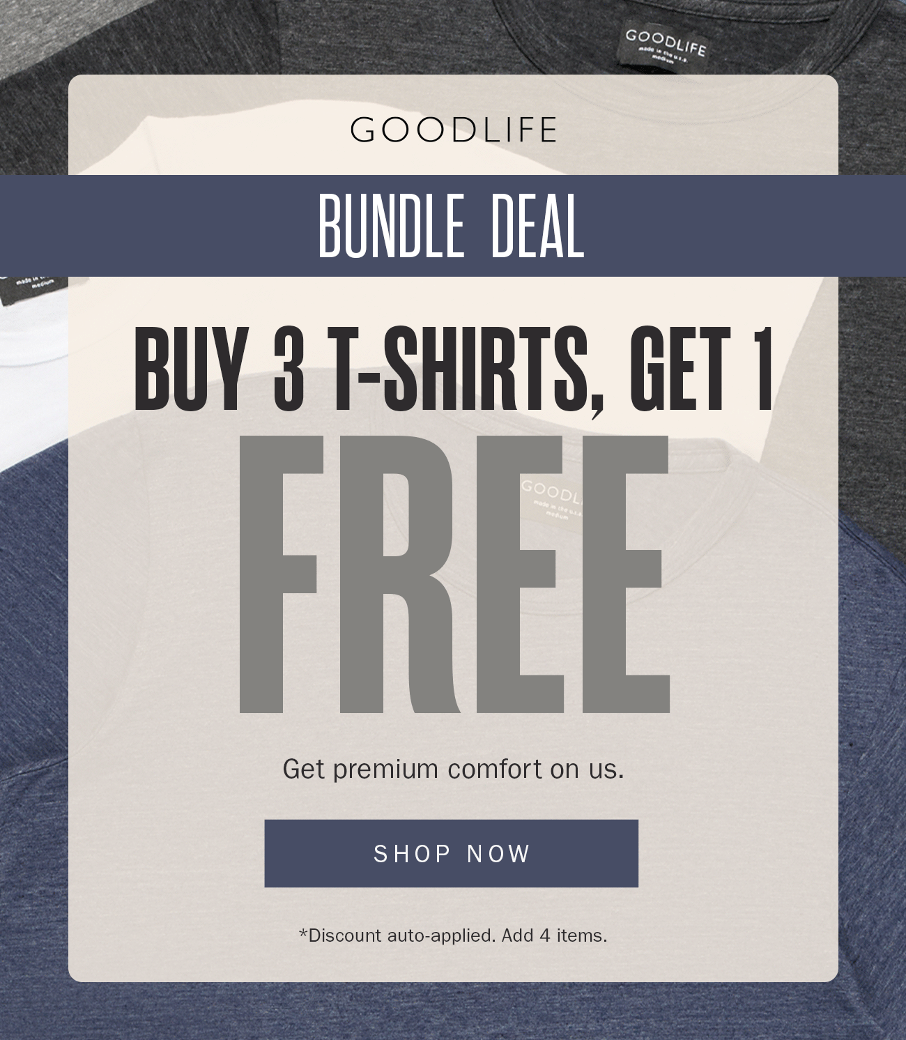 Our newest jersey fabric for holiday is a lighweight thermal fabric with a waffle texture perfect for winter layering. Buy 3 Get 1 FREE is valid at googlifeclothing.com. The offer is auto-applied at checkout once four qualifying t-shirts are added. Not valid on prior purchases and cannot be combined with other offers. Goodlife reserves the right to end this promotion without notice.