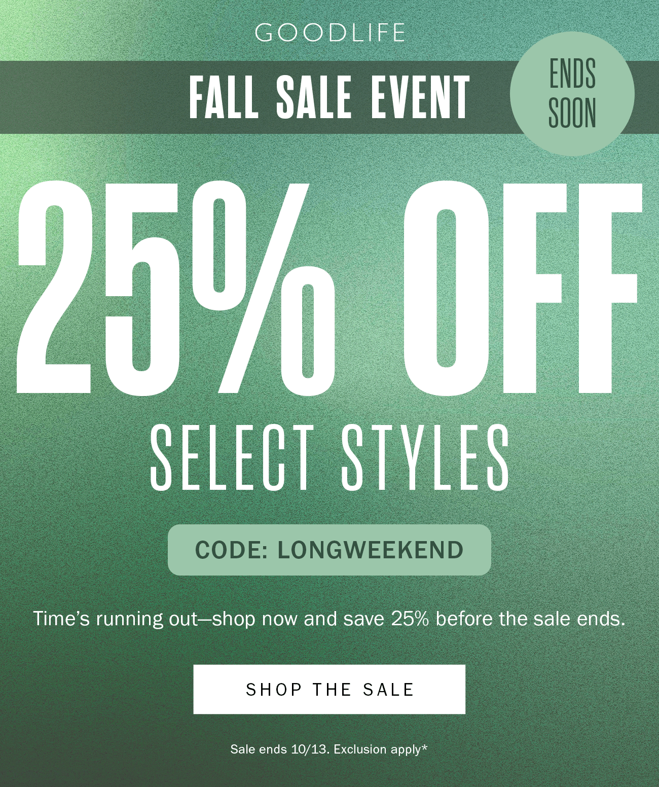Our newest jersey fabric for holiday is a lighweight thermal fabric with a waffle texture perfect for winter layering. Fall Sale Event: 25% Off select styles at Goodlifeclothing.com. Valid through 10/13/2025, 11:59 PM PST with code LONGWEEKEND. Excludes prior purchases and cannot be combined with other offers. Terms may change without notice. Exclusions apply* | | Our newest jersey fabric for holiday is a lighweight thermal fabric with a waffle texture perfect for winter layering. | | | | |