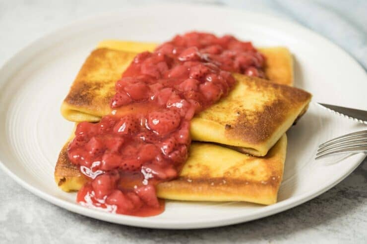 Cheese Blintzes: Cheese Blintzes are another tasty way to celebrate Simchat Torah, and this recipe never disappoints! With or without a topping, our family can never get enough of these sweet-and-savory treats.