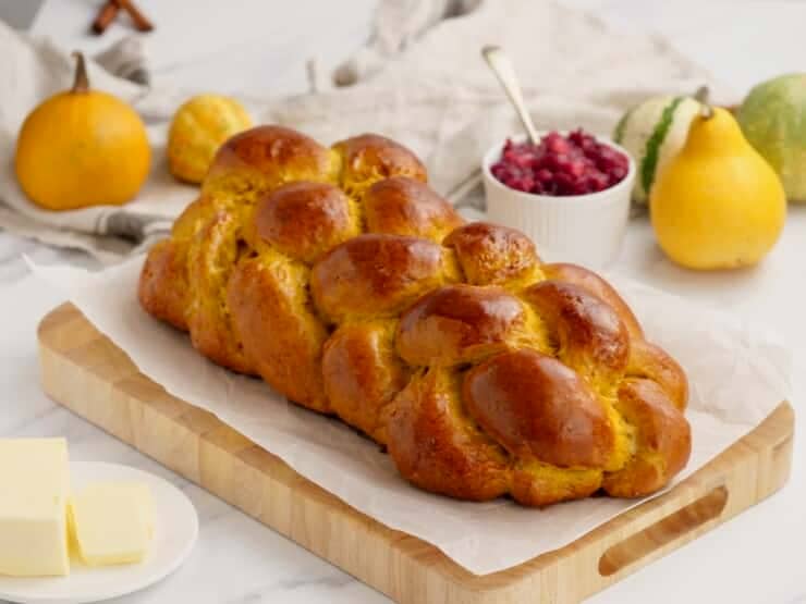 Pumpkin Challah: This mildly sweet, spice-scented Pumpkin Challah is the perfect centerpiece for a Thanksgiving spread, or any autumn holiday table.