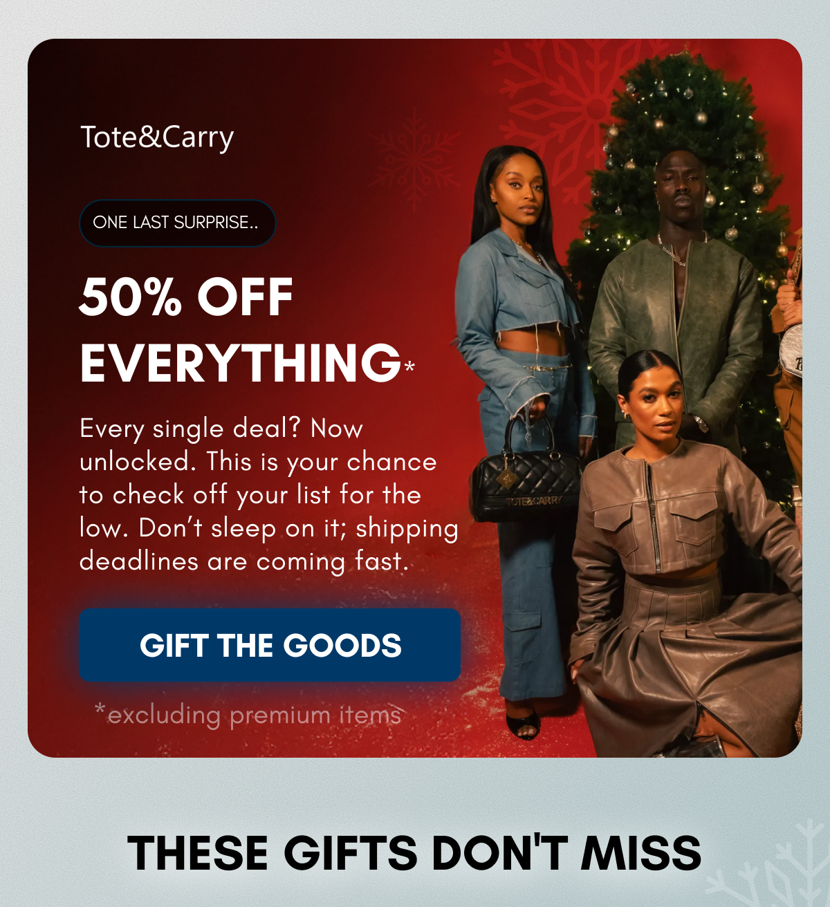 You received this email from Tote&Carry. If you would like to unsubscribe, click here. |