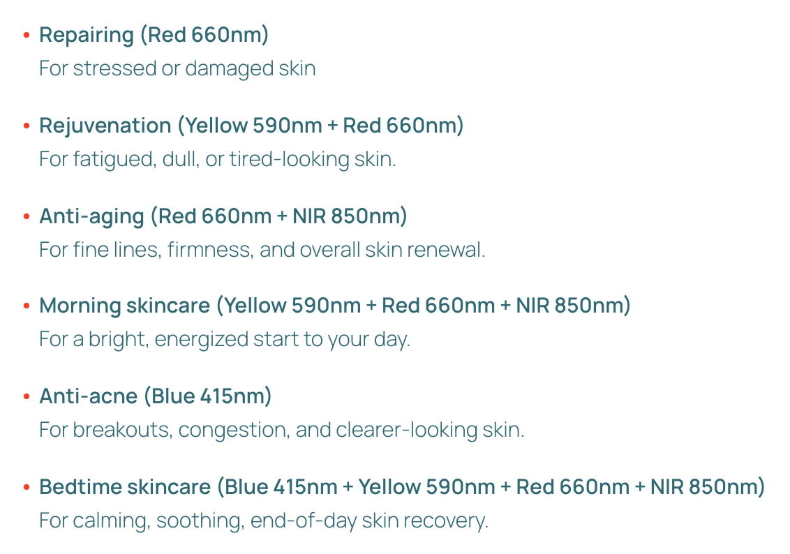 Advanced light therapy for face, neck, and chest. | | | | |