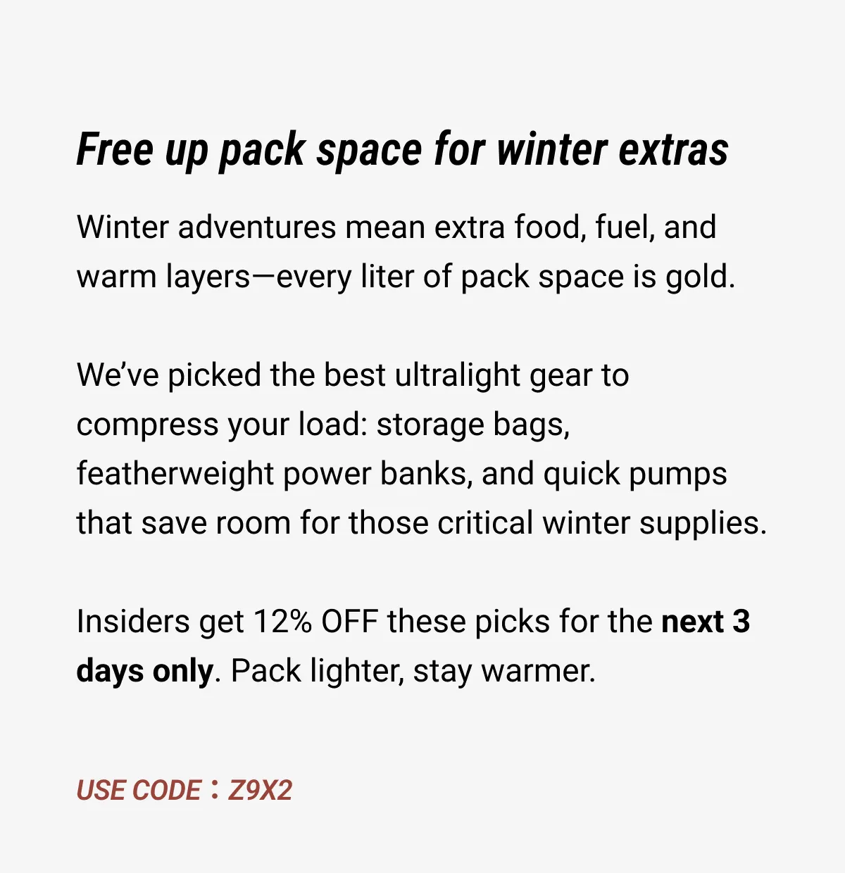 (3 Days Only!) Free up pack space for winter extras