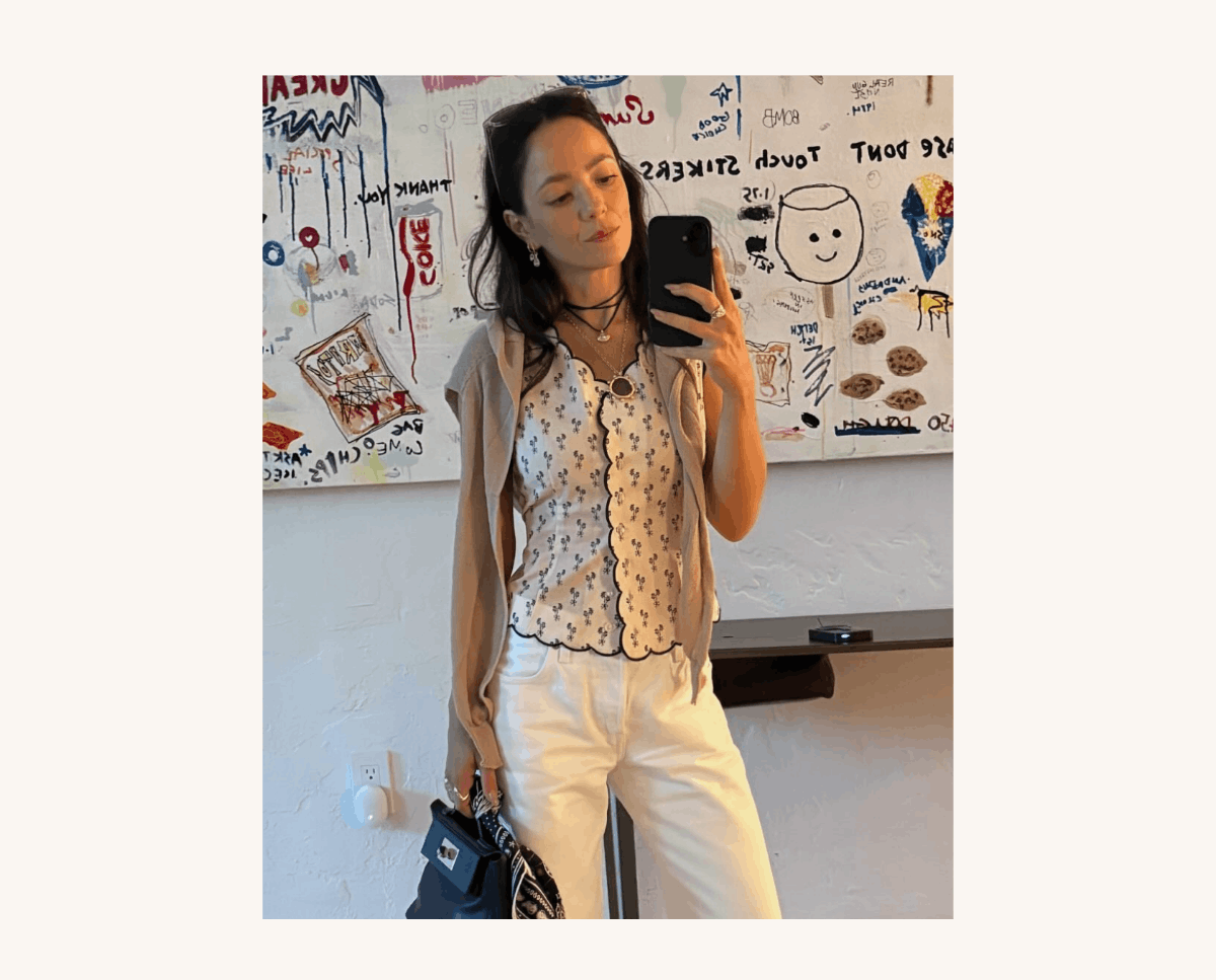 @edenberdugo wears Cynthia Floral Scalloped Vest